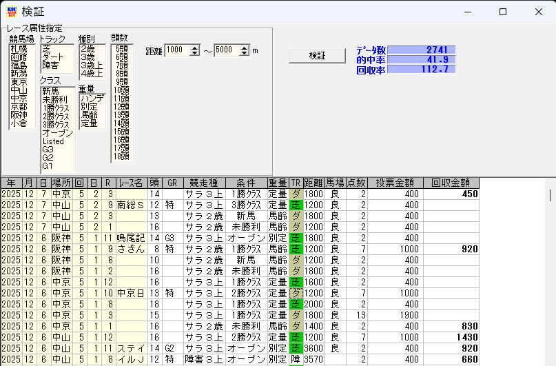 そしてこれが、2021年~2025年(12月07日まで)のJRA競馬全レースを対象とした馬券計算だ。