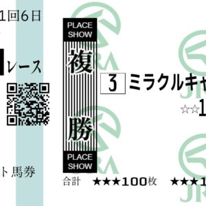 ブログhttps://twitter.com/Shinji39763675/status/2020361909468557444命名馬のミラクルキャッツが、待望の2勝目を挙げました。初勝利が2歳未勝利戦で、現在6歳。なんということでしょうかw1勝クラスに上がってからも、ずっと1桁着順で悪くはなかったんですが、この日のミラクルキャッツは、最終コーナーを回って直線に向いてからが強かった。頭が出てからは抜かせないどころか少し引き離す状態になった。https://twitter.com/MUVs8QMlSNJb1d8/status/2020368536968049141https://twitter.com/16silk_05/status/2020362090020819381ミラクルキャッツは、シルクホースクラブの所属馬で現在6歳の牝馬。通常なら6歳3月末をもって引退になるのがシルクの牝馬です。引退の可能性も大いにあります。しかし3月末までで、今1勝Cを勝ち上がったのなら、もう1戦いってもおかしくないかもしれません。もしそうなるとしたら、少し間隔は詰まりますがこれで引退というのなら、2/28小倉10R早鞆特別(D1700m)というレースがありますし、3/22には中山12R2勝C(D1800m牝馬限定)というレースがあります。本当なら小倉D1700mでもう一戦やりたいところですが、、、6歳の2月に勝利を収めたわけですが、本レースのレースレベルがあまり高くなかったということもあるのかもしれませんね。しかし、それでも6歳2月に勝ったというのは遅咲きの可能性はありますかね?いや、母ランニングボブキャッツの仔、アジアエクスプレスにしてもほかの馬にしても結構早いうちに活躍して古馬になってからは成績が振るわない馬が多いし、父キンシャサノキセキの産駒もそこまで古馬になってから大いに活躍している馬は少ない気はします。ただ、キンシャサノキセキ自身は、2歳12月にデビューし新馬勝ち、その後も勝ちを重ね7歳に高松宮記念を制していることからも古馬になってからも活躍できる可能性は秘めています。それらを見極める意味も込めてもう1戦は走ってほしいですね。もし、もし、2勝Cをあっさり勝ちあがるようなら、もしかしたら引退保留であと1年は走らせてみようとか、、、ならないかなぁ、、、このくらいの成績じゃ引退かなぁ調教師が、もう1年様子を見たいといってこればもしかしたらあり得るのかもしれませんが、勝ったとはいえ、堀調教師の管理馬に20年ぶりに騎乗した丹内騎手の起用であったり、ここまでの取り扱いを見る限りでは、調教師に強い思い入れがあるとも思えないですかね。。。勝ったことで評価が一変していればいいですが、、どうなるにせよ、この勝利によって、出資代金プラス飼い葉代程度は回収できたんじゃないかと思います。なので、ファンドとしてはギリ合格レベルかと思います。次はいい仔を産んでもらってまた出資したいところですね。 続きを読む